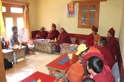 Discussing wildlife protection with Buddhist monks in Zanskar, northern India |